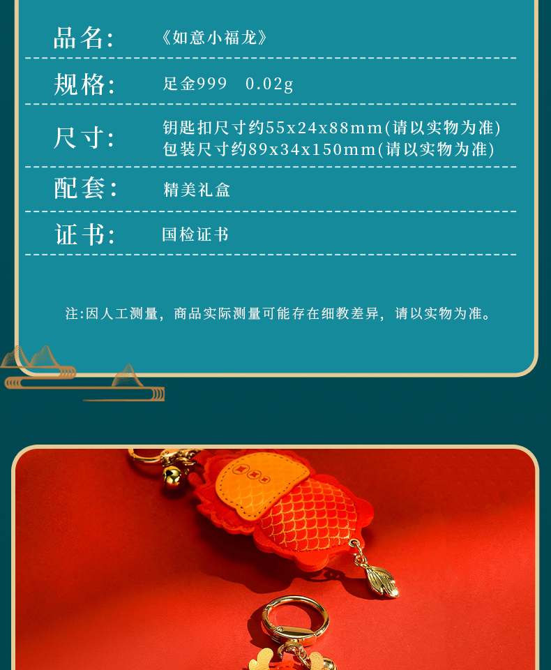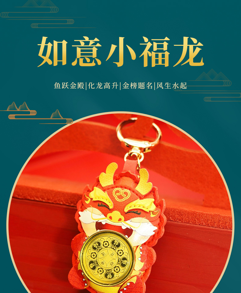 | [RuYiXiaoFulong] Oriental totem aesthetic design, which means everything goes smoothly and auspiciously. Made of high environmentally friendly PU leather and packaged in a beautiful gift box. Can be used daily as keychain/bag pendant/car pendant, etc. Give him/her a surprise gift and wish you good luck in the Year of the Dragon! | |
