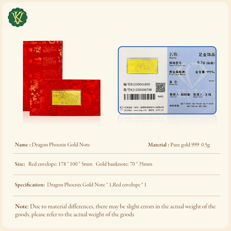 0.5g 999 Gold Best wishes from dragon and phoenix Gold Note*1